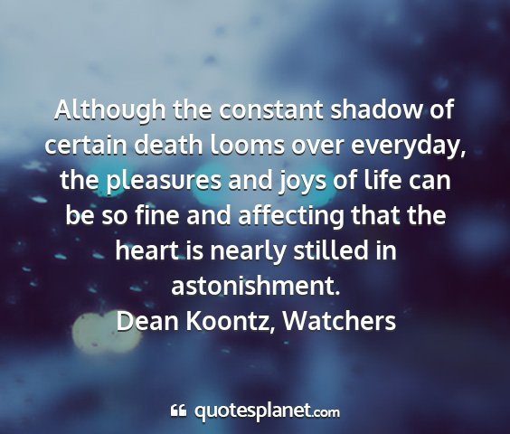 Although the constant shadow of certain death looms over everyday, the pleasures and joys of life can be so fine and affecting that the heart is nearly stilled in astonishment.Dean Koontz, Watchers