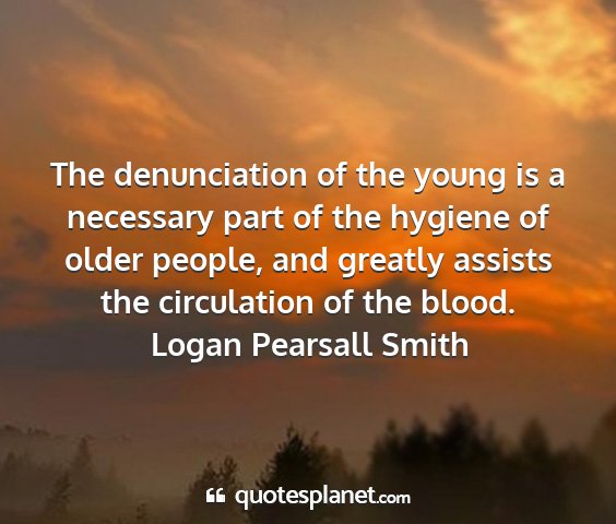 The denunciation of the young is a necessary part of the hygiene of older people, and greatly assists the circulation of the blood.Logan Pearsall Smith