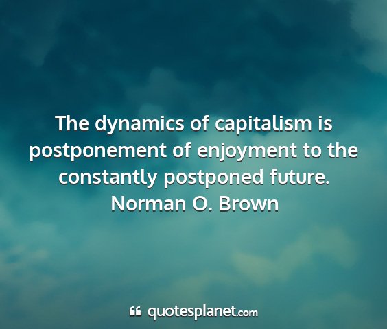 The dynamics of capitalism is postponement of enjoyment to the constantly postponed future.Norman O. Brown
