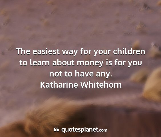The easiest way for your children to learn about money is for you not to have any.Katharine Whitehorn
