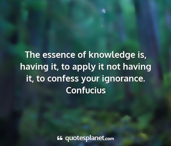 The essence of knowledge is, having it, to apply it not having it, to confess your ignorance.Confucius