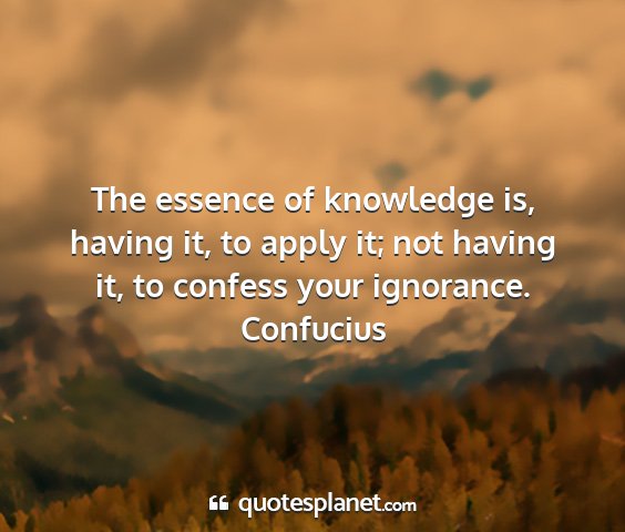 The essence of knowledge is, having it, to apply it; not having it, to confess your ignorance.Confucius