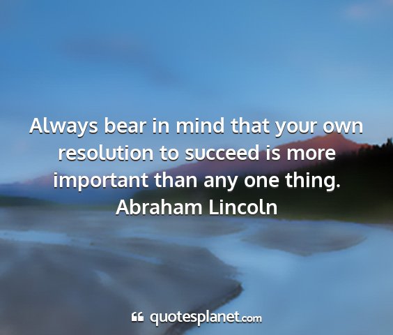 Always bear in mind that your own resolution to succeed is more important than any one thing.Abraham Lincoln
