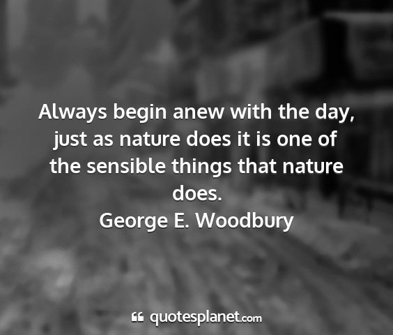 Always begin anew with the day, just as nature does it is one of the sensible things that nature does.George E. Woodbury
