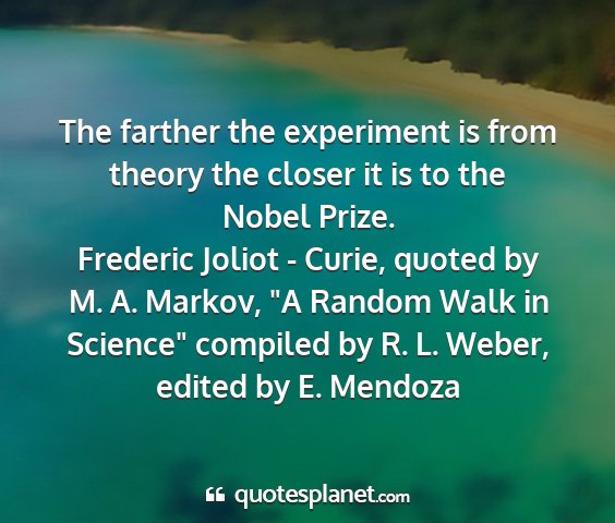 The farther the experiment is from theory the closer it is to the Nobel Prize.Frederic Joliot - Curie, quoted by M. A. Markov, "A Random Walk in Science" compiled by R. L. Weber, edited by E. Mendoza