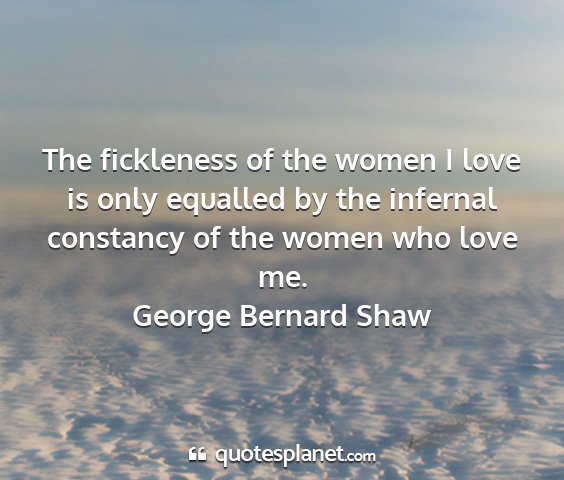 The fickleness of the women I love is only equalled by the infernal constancy of the women who love me.George Bernard Shaw