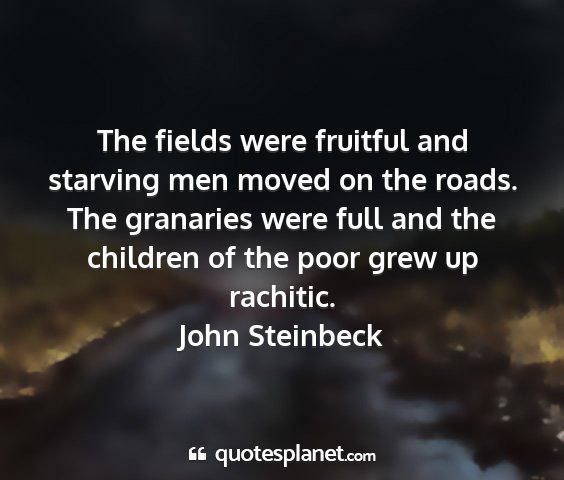 The fields were fruitful and starving men moved on the roads. The granaries were full and the children of the poor grew up rachitic.John Steinbeck