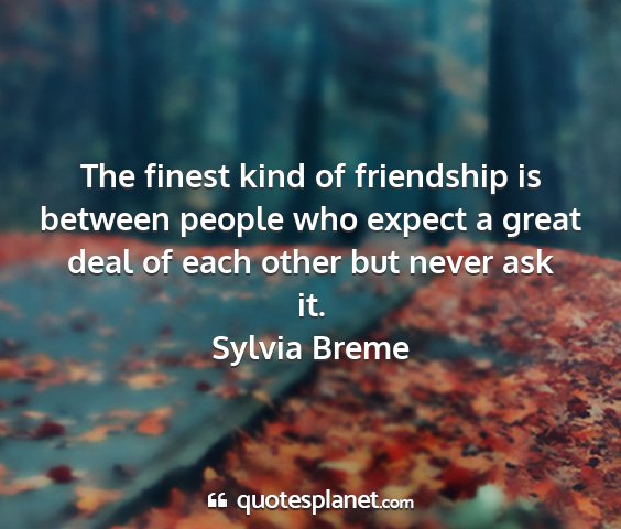 The finest kind of friendship is between people who expect a great deal of each other but never ask it.Sylvia Breme