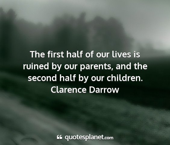 The first half of our lives is ruined by our parents, and the second half by our children.Clarence Darrow