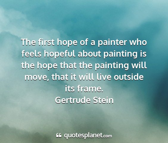 The first hope of a painter who feels hopeful about painting is the hope that the painting will move, that it will live outside its frame.Gertrude Stein