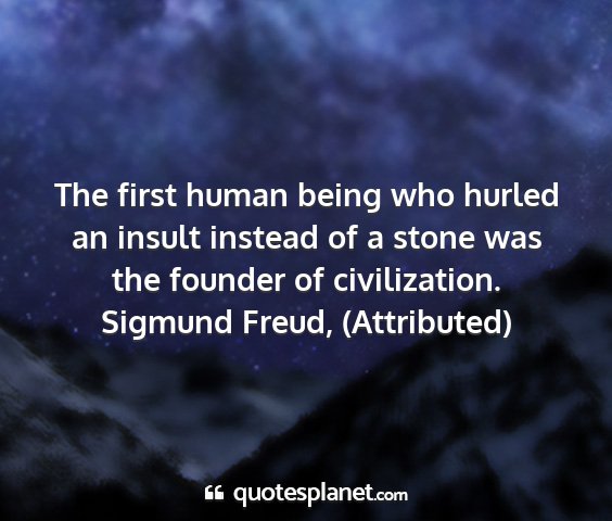 The first human being who hurled an insult instead of a stone was the founder of civilization.Sigmund Freud, (Attributed)