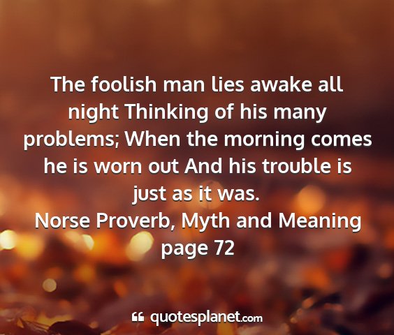 The foolish man lies awake all night Thinking of his many problems; When the morning comes he is worn out And his trouble is just as it was.Norse Proverb, Myth and Meaning page 72