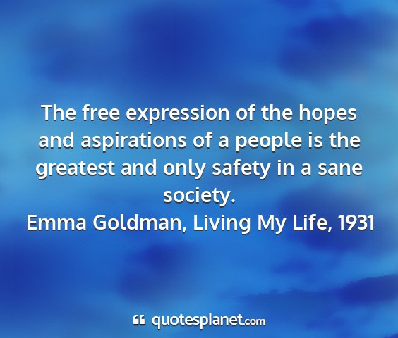 The free expression of the hopes and aspirations of a people is the greatest and only safety in a sane society.Emma Goldman, Living My Life, 1931