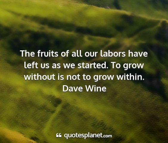 The fruits of all our labors have left us as we started. To grow without is not to grow within.Dave Wine