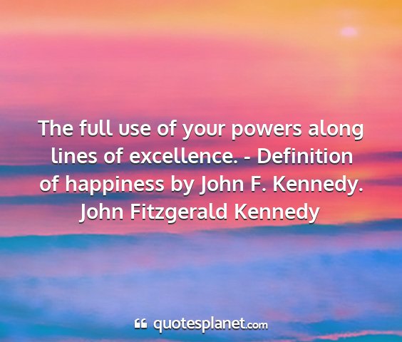 The full use of your powers along lines of excellence. - Definition of happiness by John F. Kennedy.John Fitzgerald Kennedy