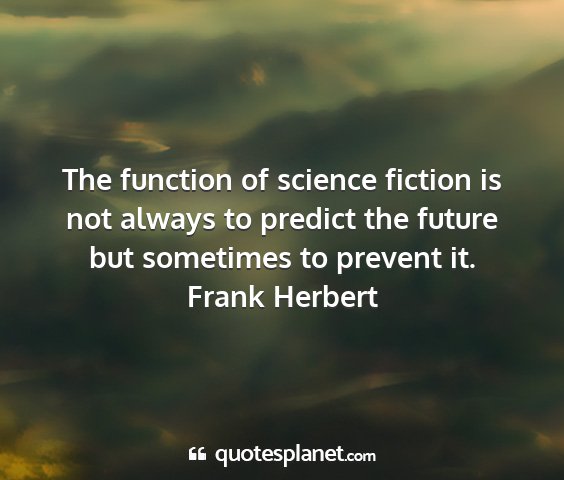 The function of science fiction is not always to predict the future but sometimes to prevent it.Frank Herbert