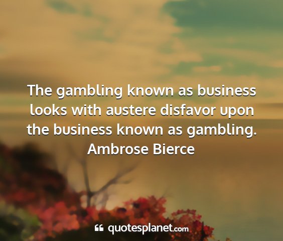 The gambling known as business looks with austere disfavor upon the business known as gambling.Ambrose Bierce