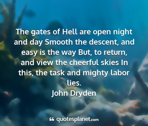 The gates of Hell are open night and day Smooth the descent, and easy is the way But, to return, and view the cheerful skies In this, the task and mighty labor lies.John Dryden