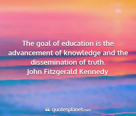 The goal of education is the advancement of knowledge and the dissemination of truth.John Fitzgerald Kennedy