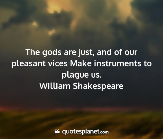 The gods are just, and of our pleasant vices Make instruments to plague us.