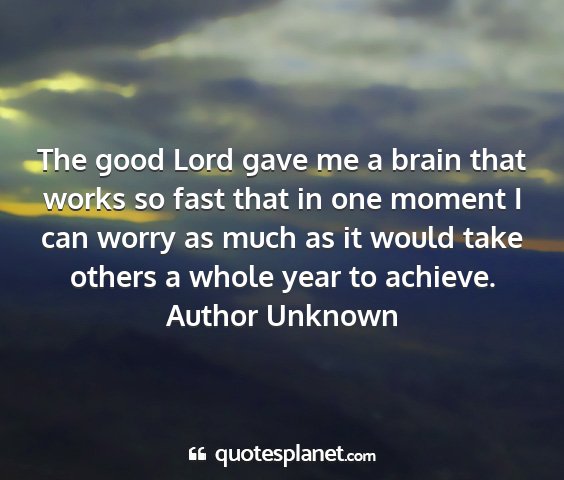 The good Lord gave me a brain that works so fast that in one moment I can worry as much as it would take others a whole year to achieve.Author Unknown