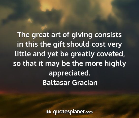 The great art of giving consists in this the gift should cost very little and yet be greatly coveted, so that it may be the more highly appreciated.Baltasar Gracian