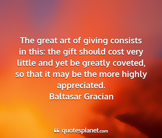 The great art of giving consists in this: the gift should cost very little and yet be greatly coveted, so that it may be the more highly appreciated.Baltasar Gracian
