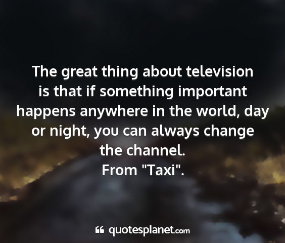 The great thing about television is that if something important happens anywhere in the world, day or night, you can always change the channel.From "Taxi".