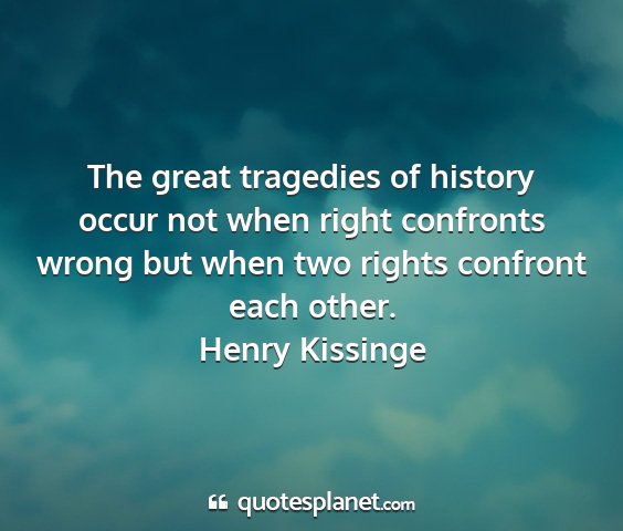 The great tragedies of history occur not when right confronts wrong but when two rights confront each other.Henry Kissinge