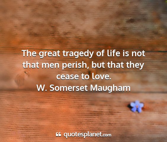 The great tragedy of life is not that men perish, but that they cease to love.