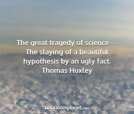 The great tragedy of science - - The slaying of a beautiful hypothesis by an ugly fact.