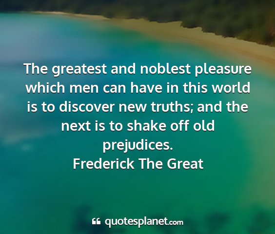 The greatest and noblest pleasure which men can have in this world is to discover new truths; and the next is to shake off old prejudices.Frederick The Great