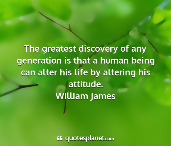 The greatest discovery of any generation is that a human being can alter his life by altering his attitude.William James