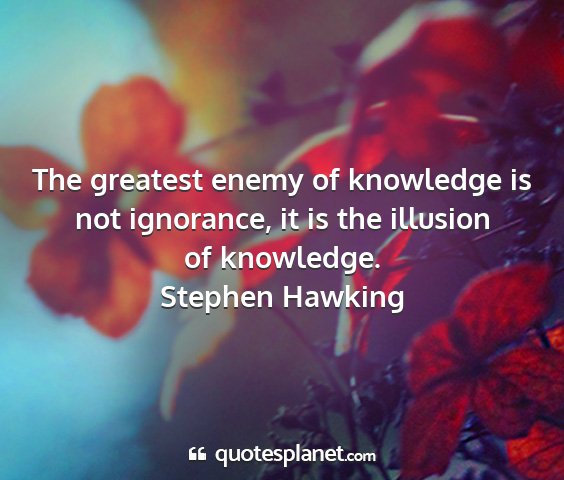 The greatest enemy of knowledge is not ignorance, it is the illusion of knowledge.