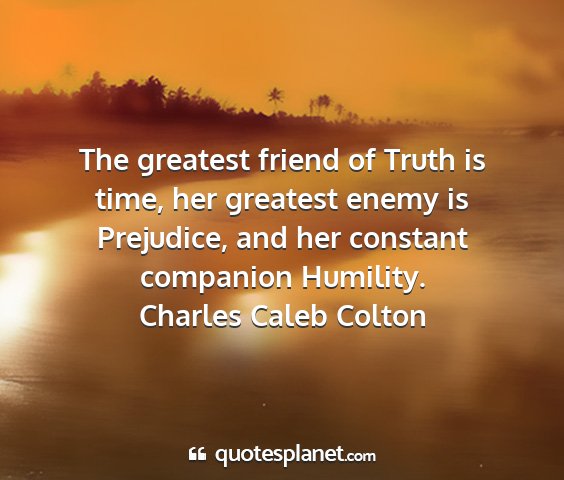 The greatest friend of Truth is time, her greatest enemy is Prejudice, and her constant companion Humility.Charles Caleb Colton