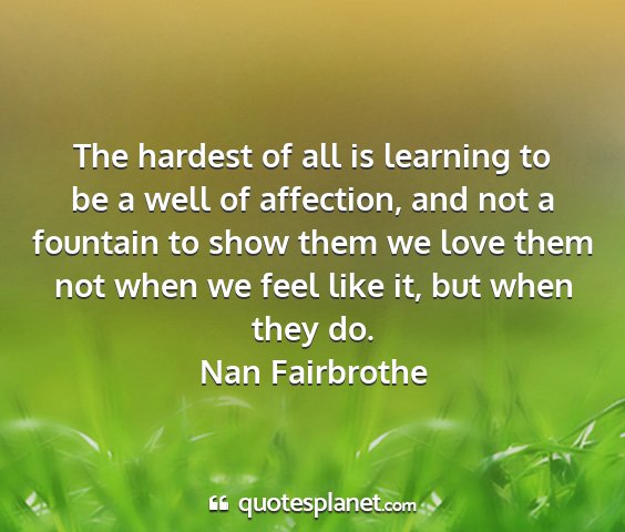 The hardest of all is learning to be a well of affection, and not a fountain to show them we love them not when we feel like it, but when they do.Nan Fairbrothe