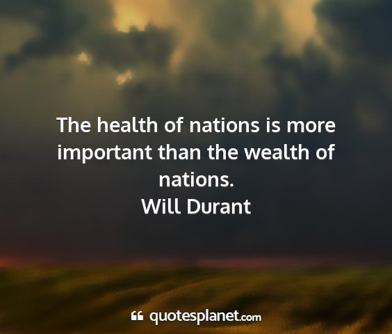 The health of nations is more important than the wealth of nations.