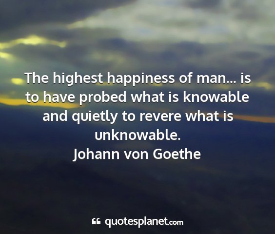 The highest happiness of man... is to have probed what is knowable and quietly to revere what is unknowable.Johann von Goethe