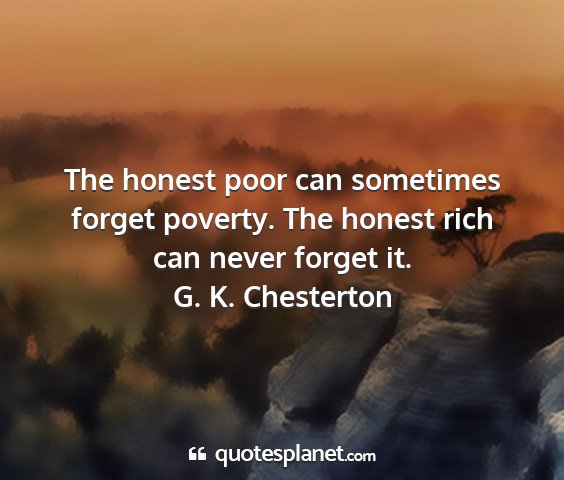 The honest poor can sometimes forget poverty. The honest rich can never forget it.