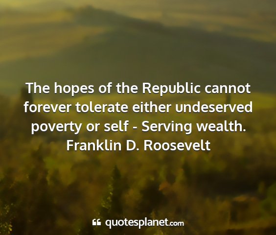 The hopes of the Republic cannot forever tolerate either undeserved poverty or self - Serving wealth.Franklin D. Roosevelt