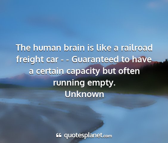 The human brain is like a railroad freight car - - Guaranteed to have a certain capacity but often running empty.Unknown
