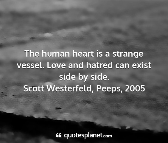 The human heart is a strange vessel. Love and hatred can exist side by side.Scott Westerfeld, Peeps, 2005