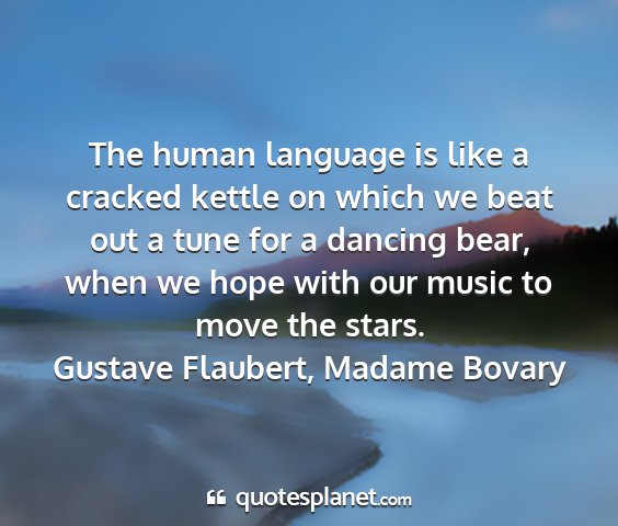 The human language is like a cracked kettle on which we beat out a tune for a dancing bear, when we hope with our music to move the stars.Gustave Flaubert, Madame Bovary