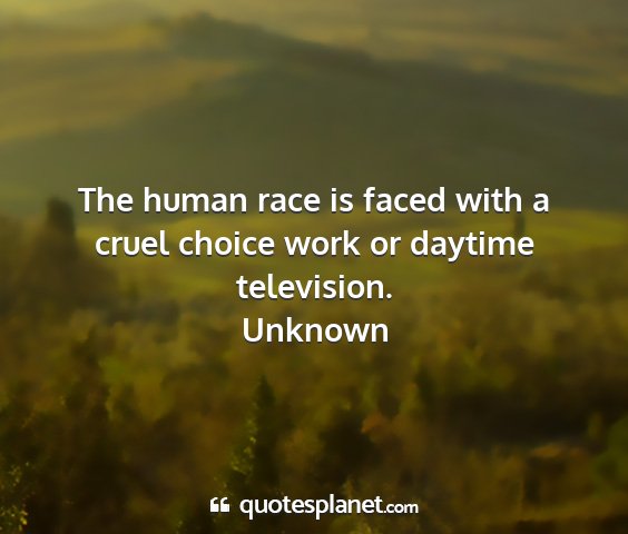 The human race is faced with a cruel choice work or daytime television.
