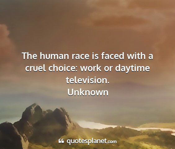 The human race is faced with a cruel choice: work or daytime television.