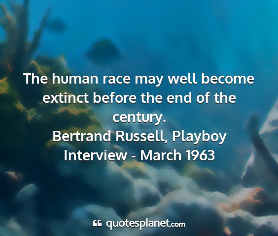 The human race may well become extinct before the end of the century.Bertrand Russell, Playboy Interview - March 1963