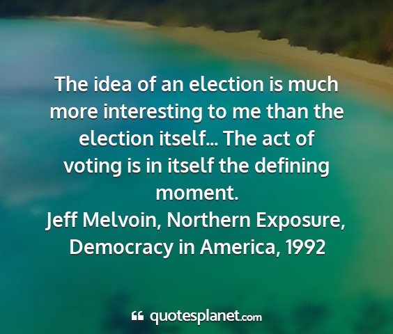 The idea of an election is much more interesting to me than the election itself... The act of voting is in itself the defining moment.Jeff Melvoin, Northern Exposure, Democracy in America, 1992