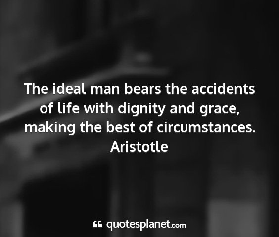 The ideal man bears the accidents of life with dignity and grace, making the best of circumstances.Aristotle