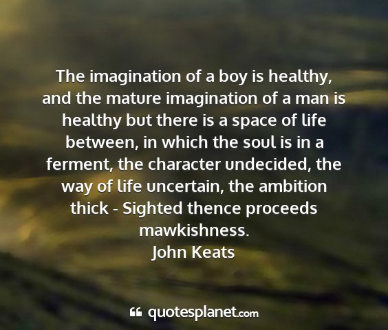 The imagination of a boy is healthy, and the mature imagination of a man is healthy but there is a space of life between, in which the soul is in a ferment, the character undecided, the way of life uncertain, the ambition thick - Sighted thence proceeds mawkishness.John Keats