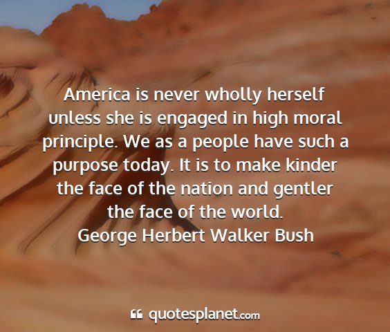 America is never wholly herself unless she is engaged in high moral principle. We as a people have such a purpose today. It is to make kinder the face of the nation and gentler the face of the world.George Herbert Walker Bush